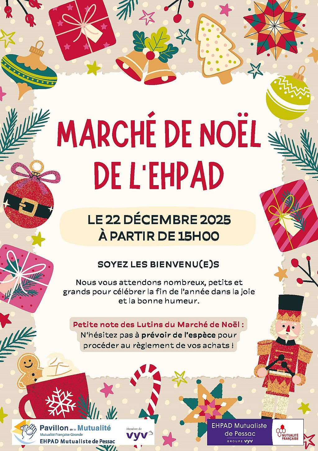 Comme il est de tradition, l'EHPAD Mutualiste de Pessac organise son marché de Noël. L'occasion pour l'établissement de célébrer les fêtes de fin d'année avec l'ensemble des résidents et leurs familles.