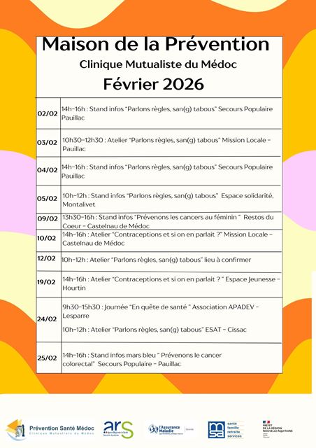 En février, la Maison de la Prévention de la Clinique Mutualiste du Médoc poursuit ses actions de sensibilisation notamment avec un focus sur la santé des femmes, et le cancer colorectal.